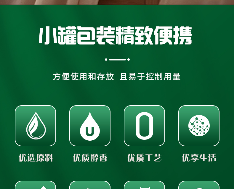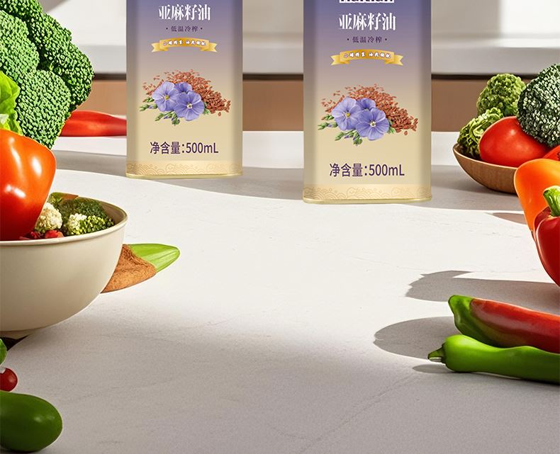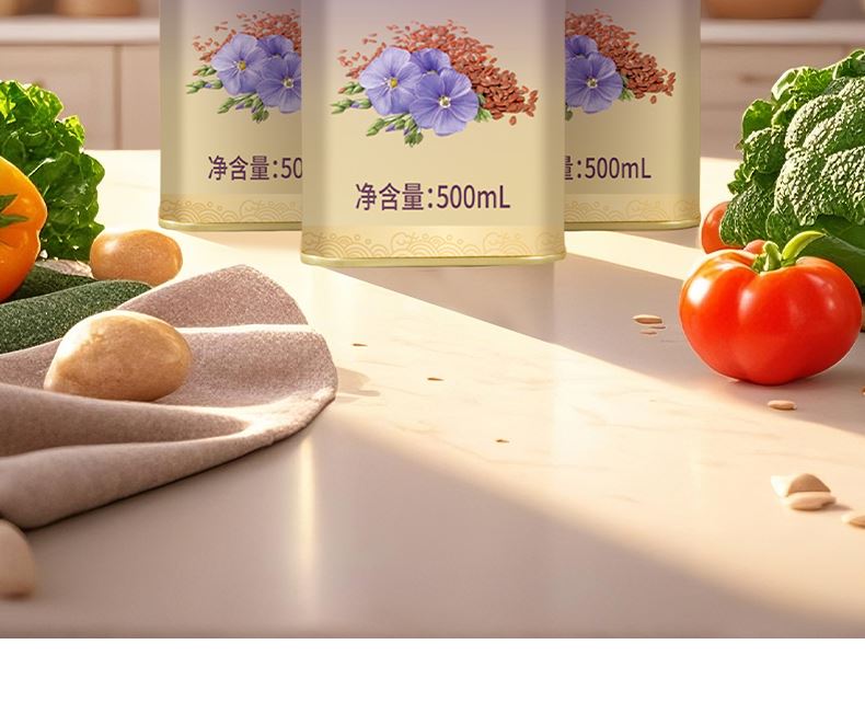 净含量:1.5L 内配:亚麻籽油(500mL铁罐*3) 重力感应油壶*1个 礼盒尺寸:331*296mm 推荐理由:员工福利、积分兑换、项目招标 物理低温冷榨 冷烹两用 油体清澈 味道清香 头道初榨 0胆固 醇 亚麻酸大于52%