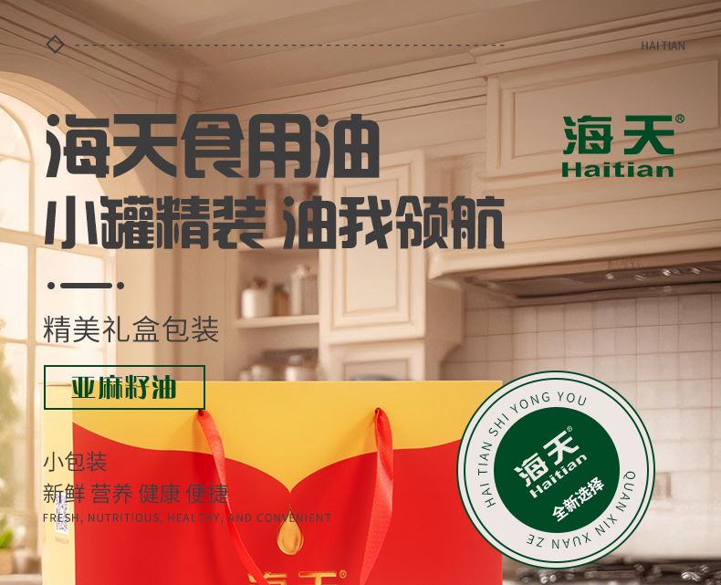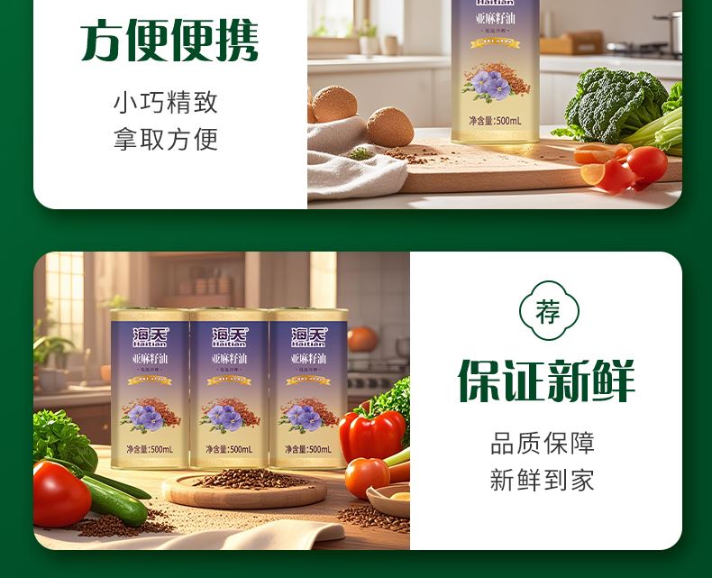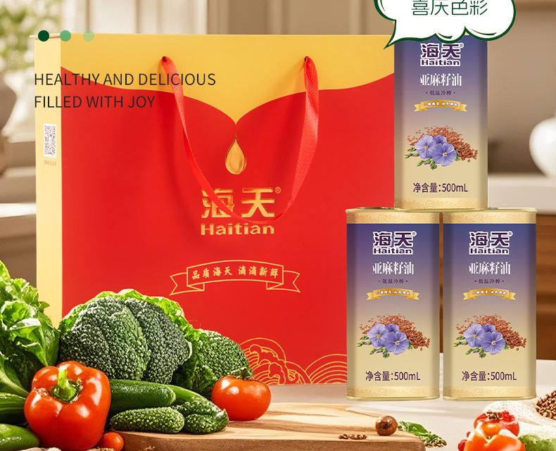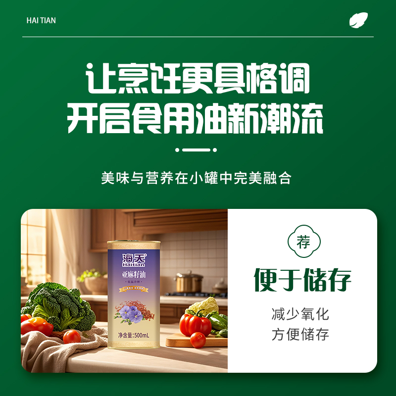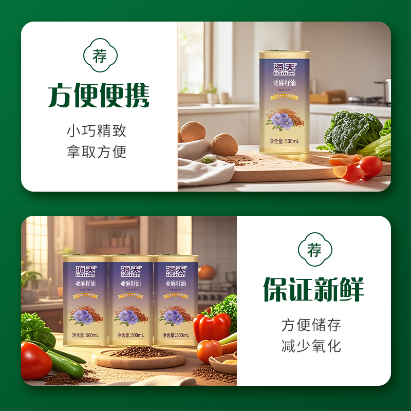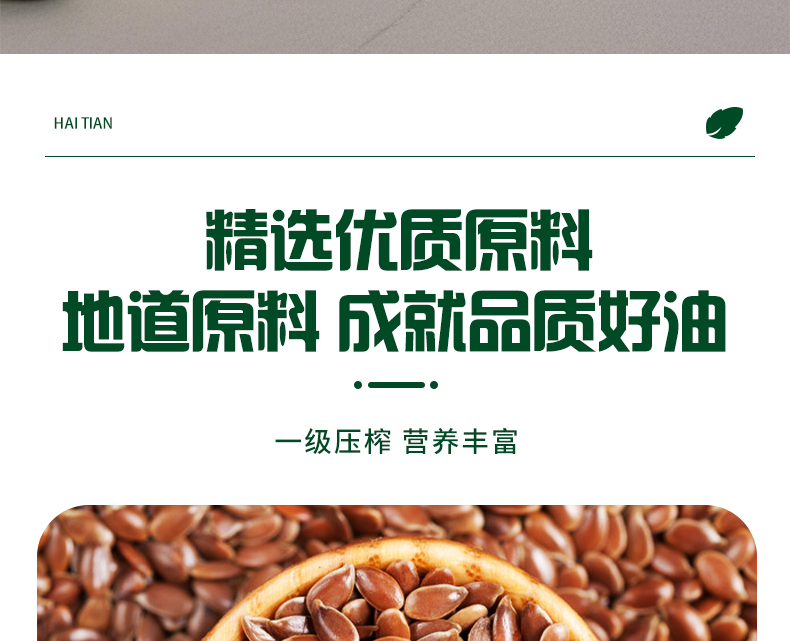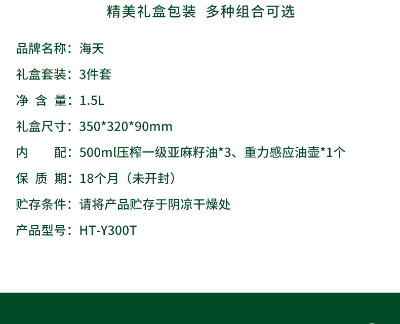 海天食用油非转基因亚麻籽油3件套(铁罐)HT-Y300T